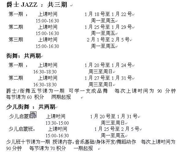 【欧吉舞蹈】寒假班课程安排